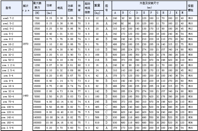 XVM振動電機的設計可適用于各種標準電壓及頻率的三相交流電源,如適用于中國、歐洲的220/380V、50HZ電壓等級;美國的230/460V、60HZ電壓等級;日本的220V、50/60HZ電壓等級等,能應用于世界各地。還可適用各種電氣制動方式,如能耗制動、反接制動等。此型號振動電機系采用VIMARC先進技術設計生產的高品質振動電機,兩端的激振塊上標有精確的刻度盤,可以非常容易的調節激振力及工作力矩從零到最大的無極調節,滿足工作需要。